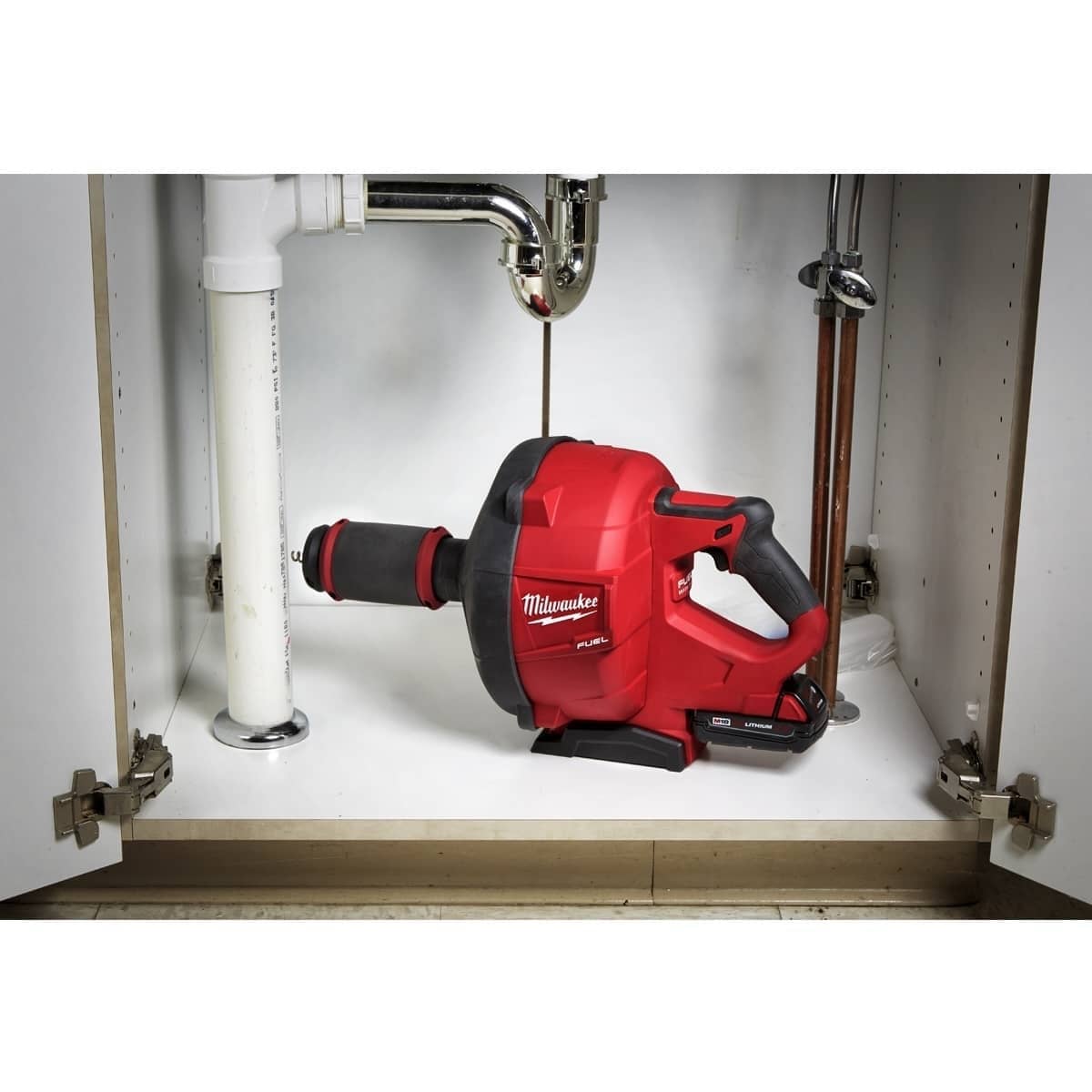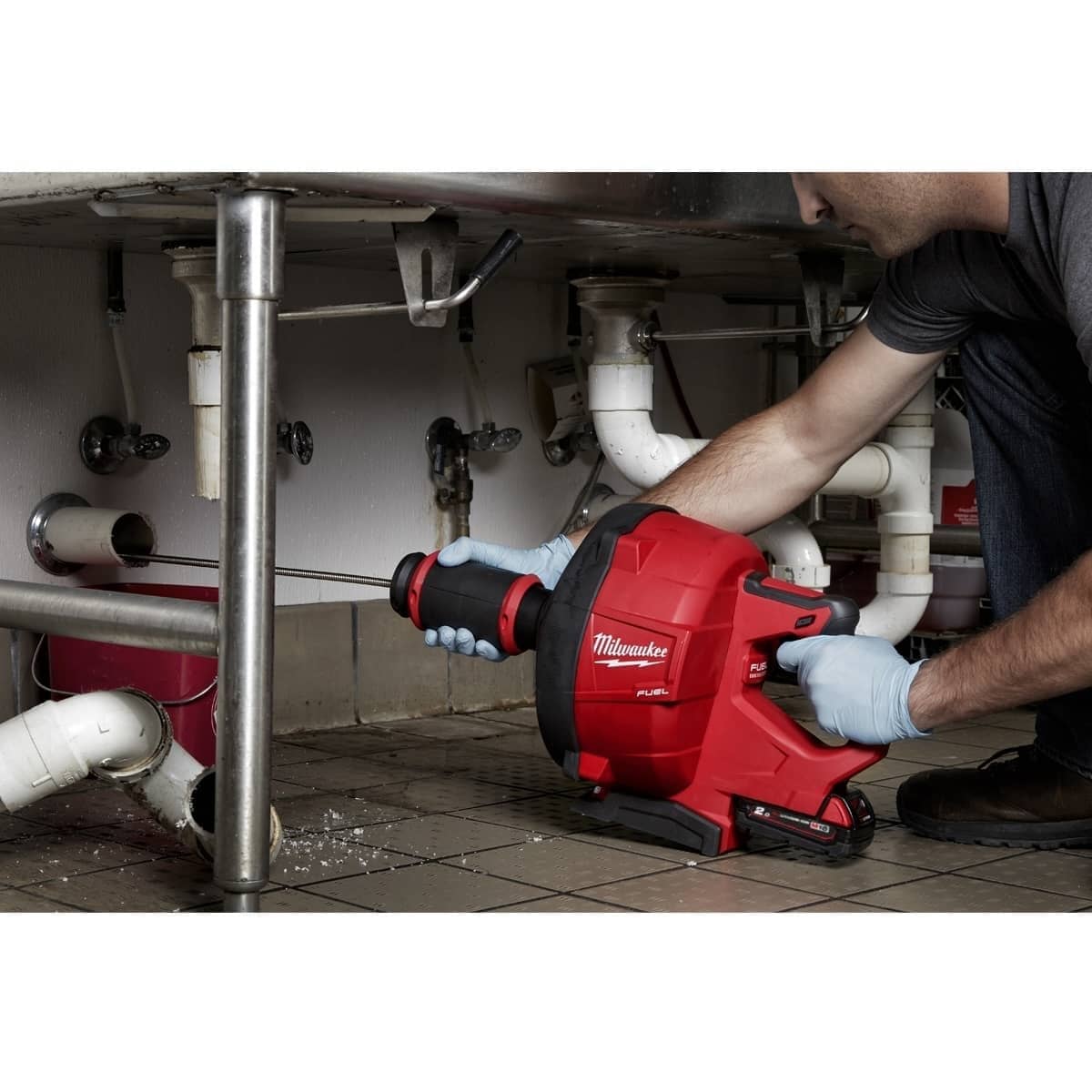 Ο πρώτος καθαριστής αποχέτευσης χειρός στον κόσμο με μπαταρία 18V, αυτόματη τροφοδοσία και ανάκληση που μπορεί να χρησιμοποιηθεί με καλώδια 6 mm, 8 mm και 10 mm τόσο από το MILWAUKEE® όσο και από άλλους κατασκευαστές, σε σωλήνες από 32 mm έως 75 mm, έως 15 m, εξαλείφοντας όλους τους κινδύνους ηλεκτροπληξίας που αντιμετωπίζουν σήμερα οι χρήστες με τα ενσύρματα εργαλεία τους.